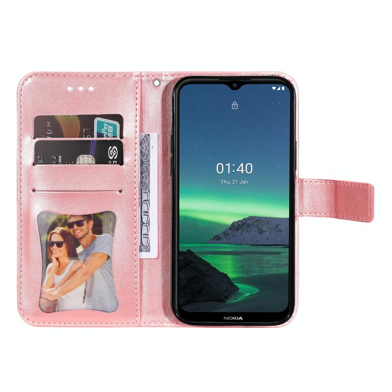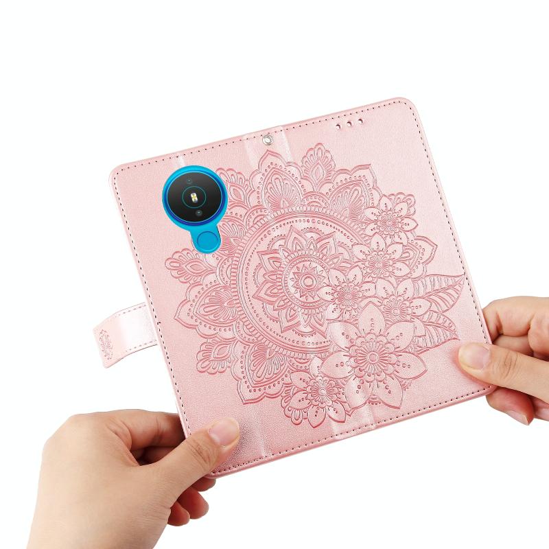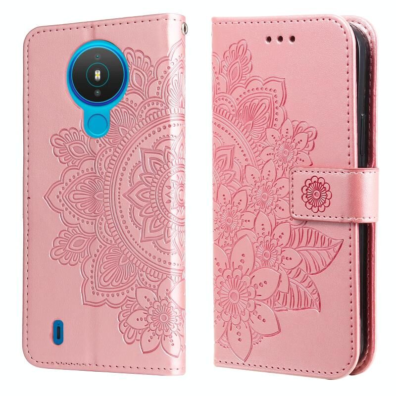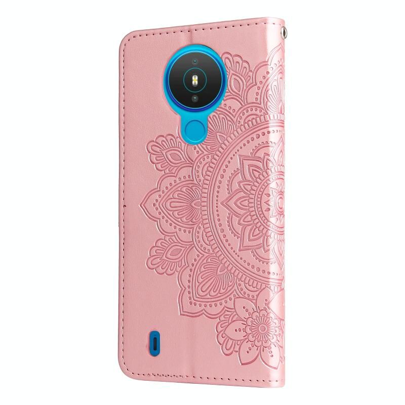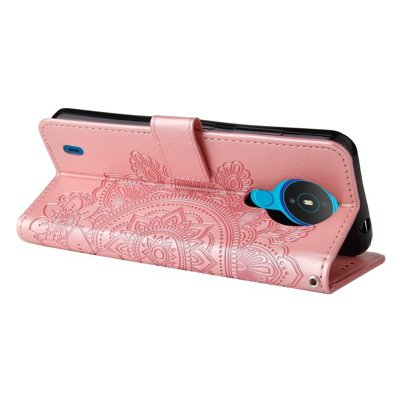 For Nokia 1.4 7-petal Flowers Embossing Pattern Horizontal Flip PU Leather Case with Holder & Card Slots & Wallet & Photo Frame(Rose Gold)