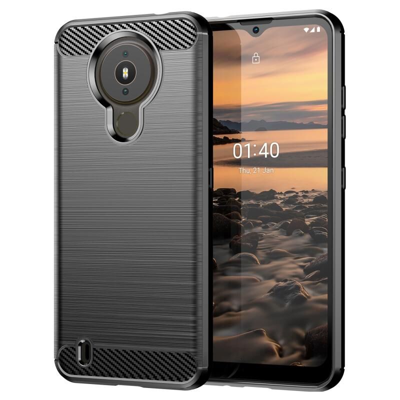 Για Nokia 1.4 βουρτσισμένη υφή Carbon Fiber TPU υπόθεση τηλεφώνου (μαύρο)