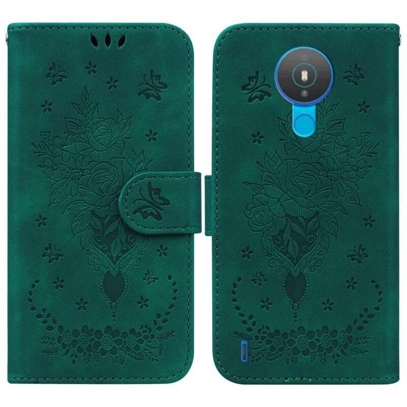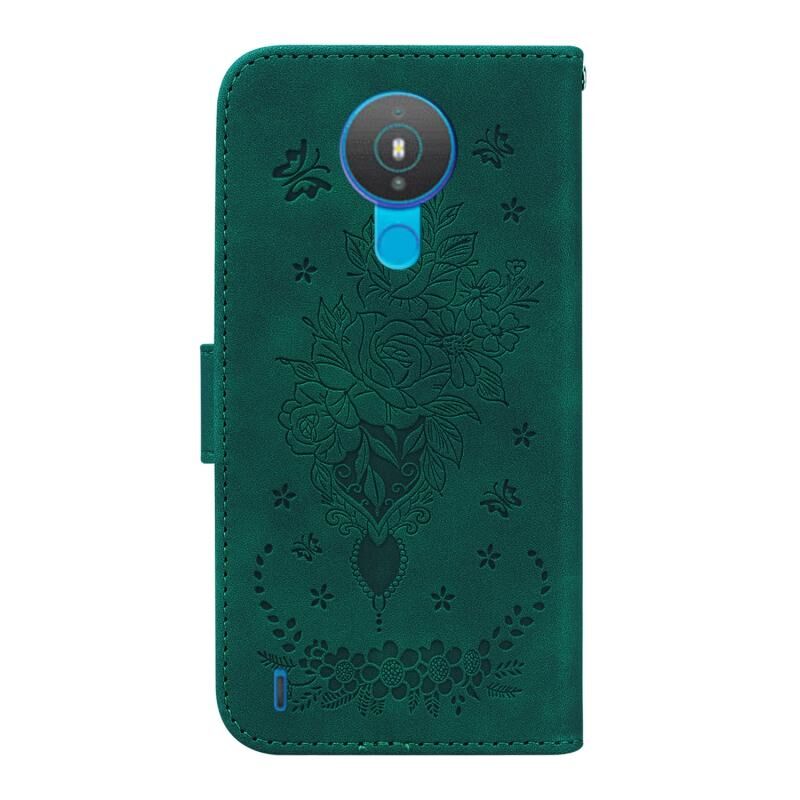 Για Nokia 1.4 Πεταλούδα Rose ανάγλυφη δερμάτινη θήκη τηλεφώνου (πράσινο)