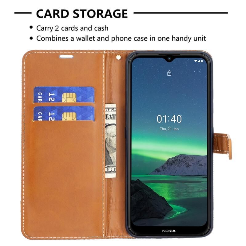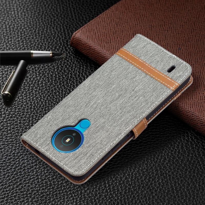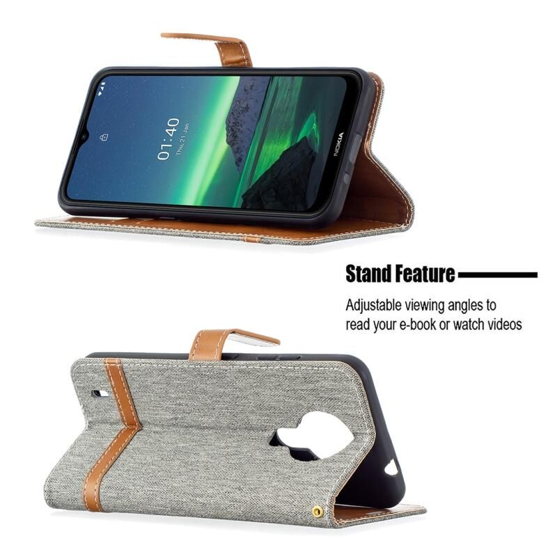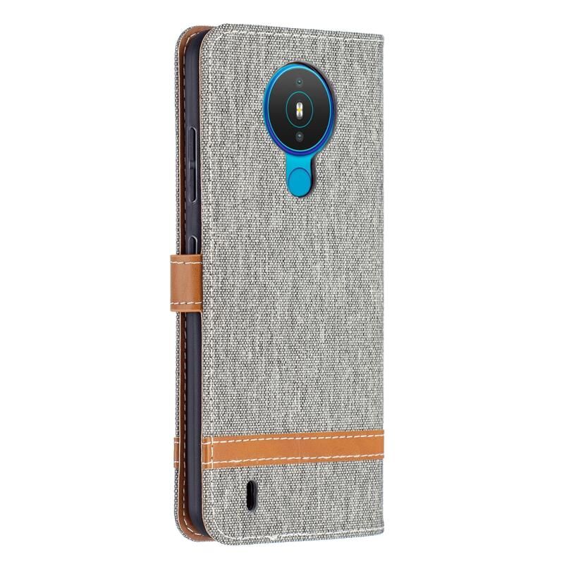 Για το Nokia 1.4 Χρώμα ταιριάζει με Denim Υφή οριζόντια Flip δερμάτινη θήκη με θήκη & υποδοχές για κάρτες & πορτοφόλι & κορδόνι (γκρι)