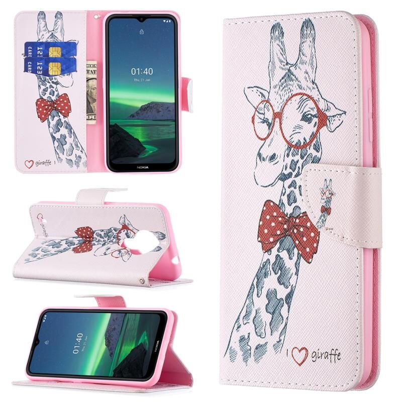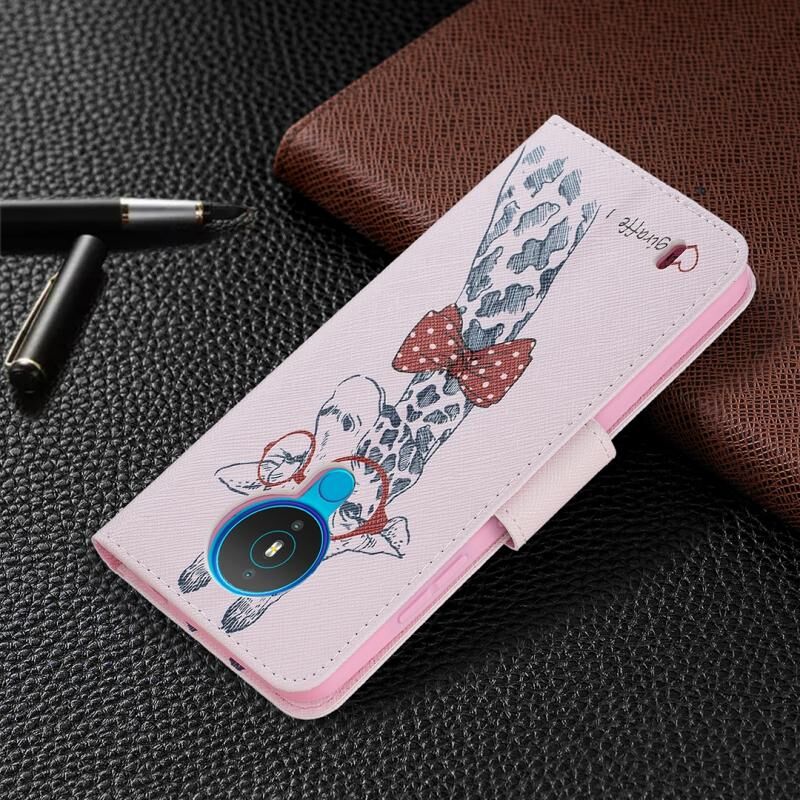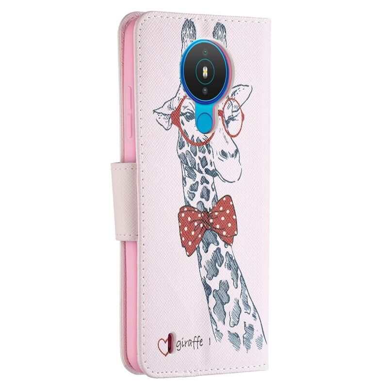 Θήκη δέρματος για Nokia 1.4 με σχέδιο έγχρωμου σχεδίου, οριζόντια αναδίπλωση, με βάση & υποδοχές καρτών & πορτοφόλι (Ελάφι)