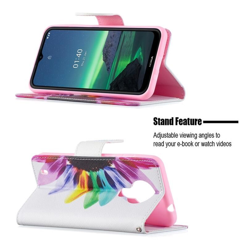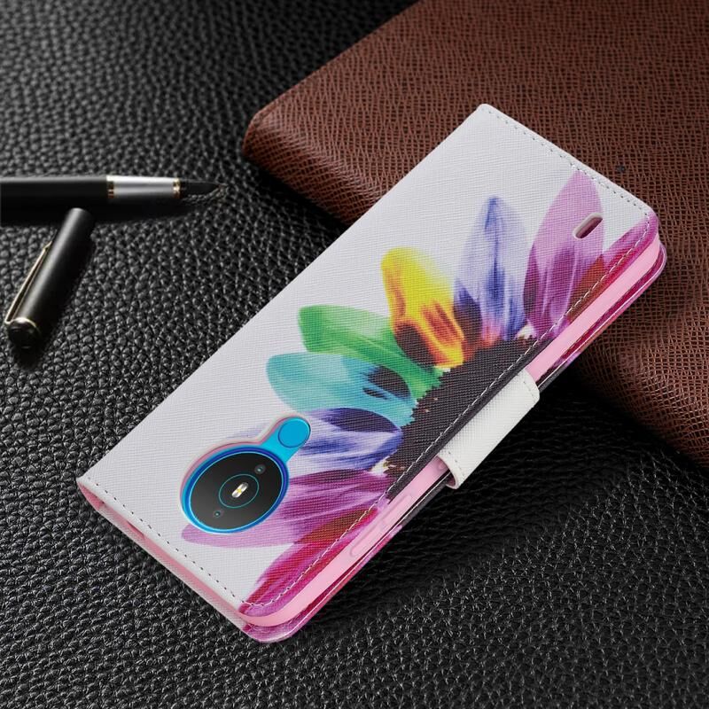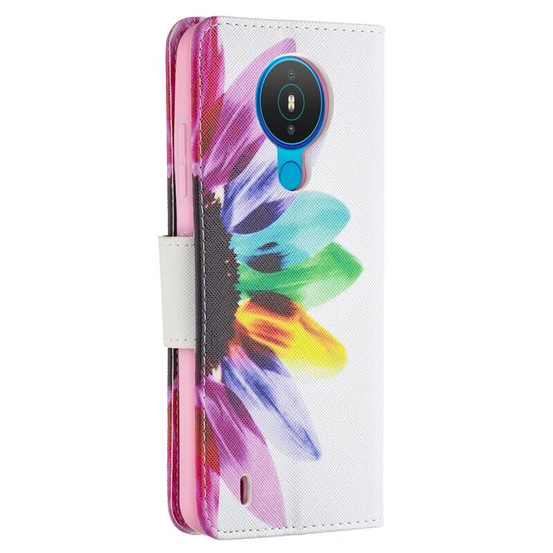 Θήκη δέρματος για Nokia 1.4 με σχέδιο πολύχρωμου σχεδίου, οριζόντια αναδίπλωση, με βάση & υποδοχές καρτών & πορτοφόλι (Ηλίανθος)