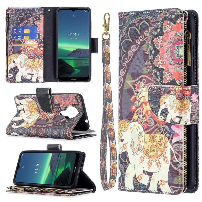 For Nokia 1.4 Colored Drawing Pattern Zipper Horizontal Flip Leather Case with Holder & Card Slots & Wallet(Flower Elephants)