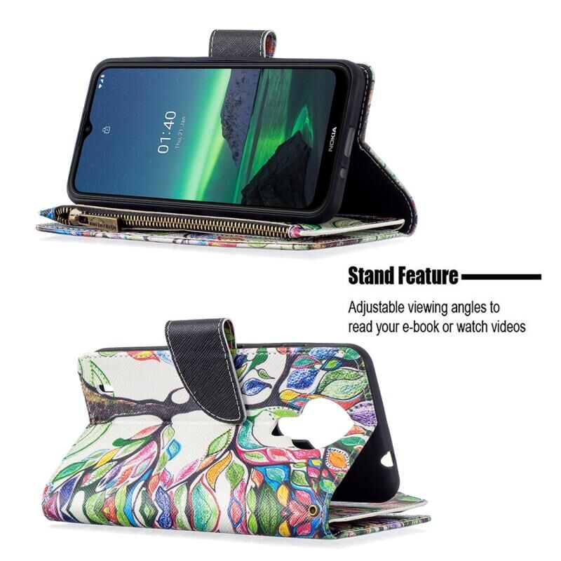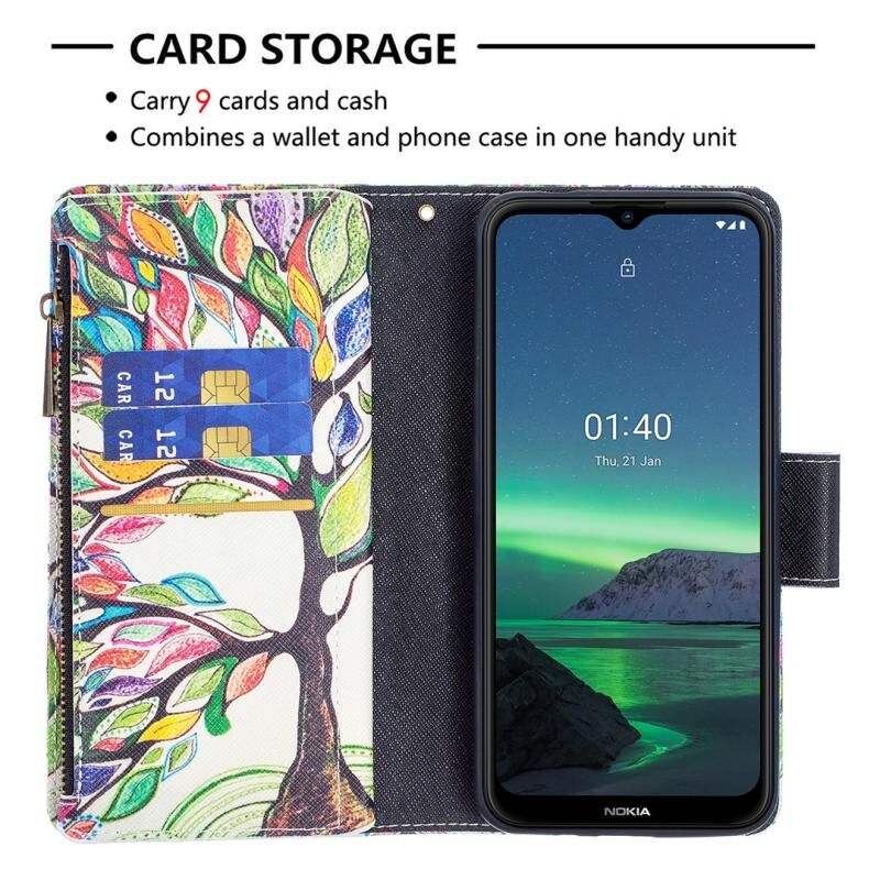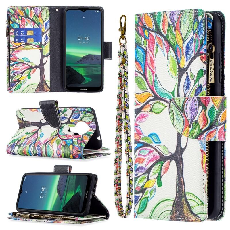 For Nokia 1.4 Colored Drawing Pattern Zipper Horizontal Flip Leather Case with Holder & Card Slots & Wallet(Tree)