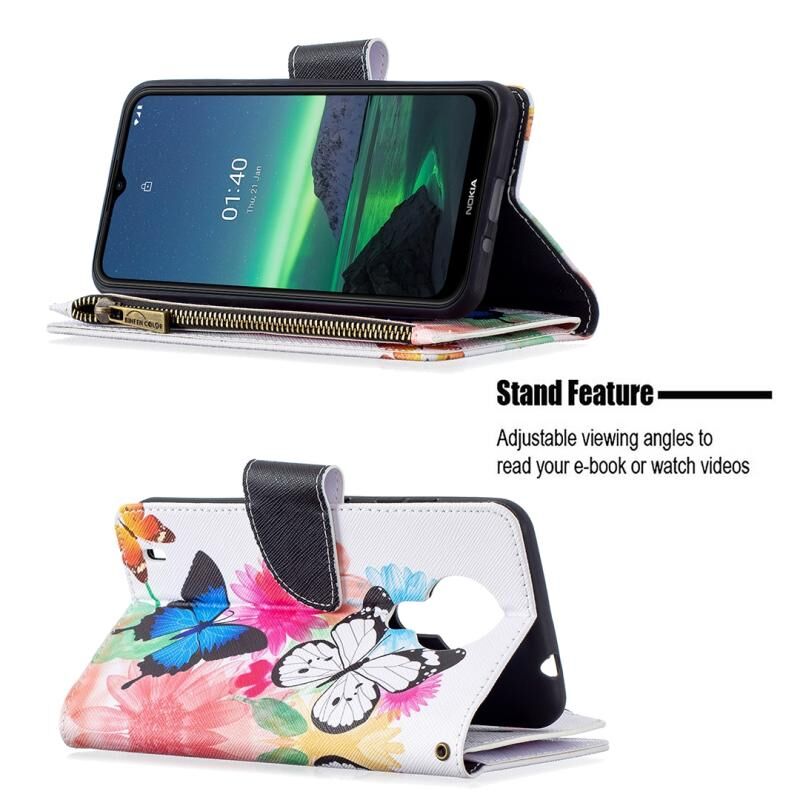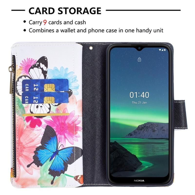 For Nokia 1.4 Colored Drawing Pattern Zipper Horizontal Flip Leather Case with Holder & Card Slots & Wallet(Two Butterflies)