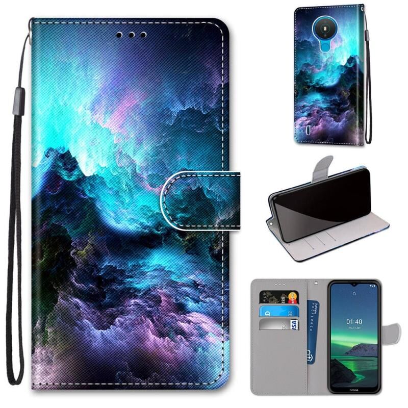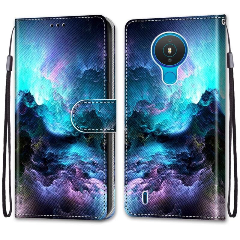 Θήκη για Nokia 1.4 από Δερματίνη PU με Σταυρωτή Υφή, Οριζόντια Αναδίπλωση, με Λαβή, Θήκες για Κάρτες, Πορτοφόλι & Λουρί (Πολύχρωμα Σύννεφα)