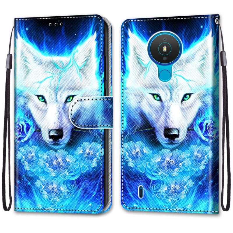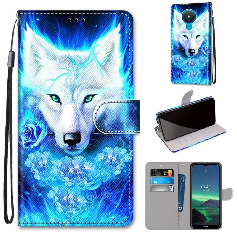 Θήκη για Nokia 1.4 με έγχρωμο σχέδιο, υφή σταυρού, οριζόντια αναδίπλωση, από δερματίνη PU με βάση & υποδοχές καρτών & πορτοφόλι & κορδόνι (Dick Rose Wolf)