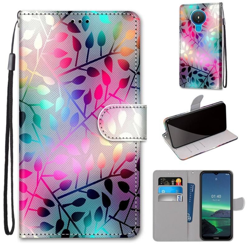 Θήκη για Nokia 1.4 με έγχρωμο σχέδιο, υφή σταυρού, οριζόντια αναδίπλωση, από δερματίνη PU με βάση & υποδοχές καρτών & πορτοφόλι & κορδόνι (Διαφανές Γυαλί)
