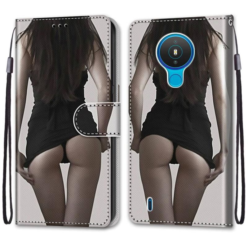 Θήκη για Nokia 1.4 με έγχρωμο σχέδιο, υφή σταυρού, οριζόντια αναδίπλωση, από δερματίνη PU με βάση, θήκες για κάρτες, πορτοφόλι & κορδόνι (ανυψωτικό φόρεμα).