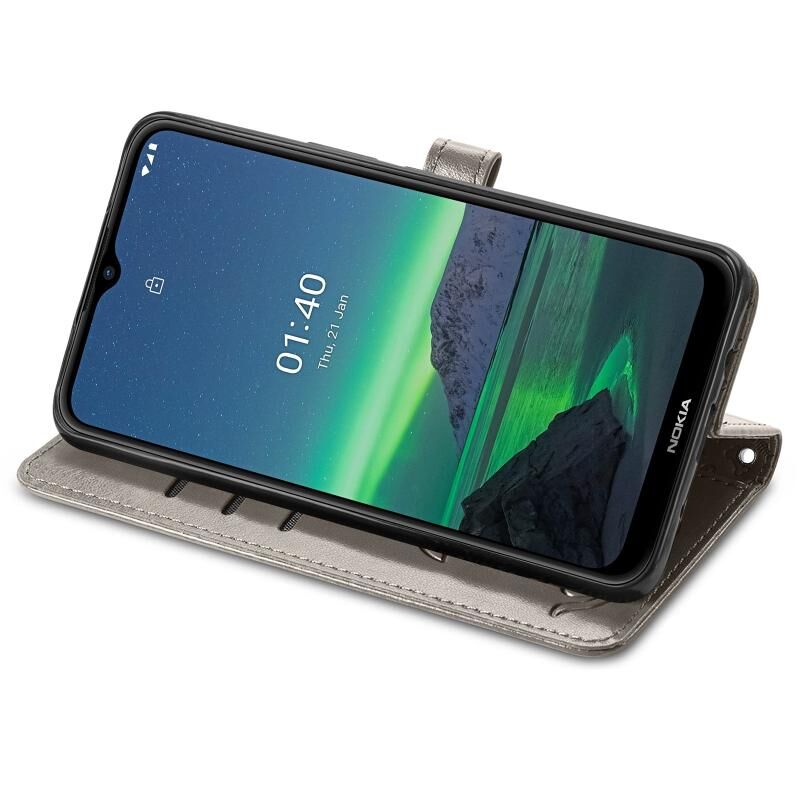 Για Nokia 1.4 Χαριτωμένη γάτα και σκύλος ανάγλυφη οριζόντια Flip δερμάτινη θήκη με θήκη & υποδοχές καρτών & πορτοφόλι & κορδόνι (γκρι)