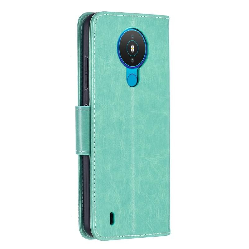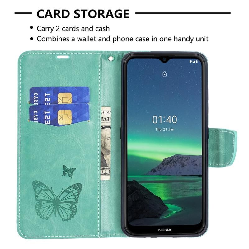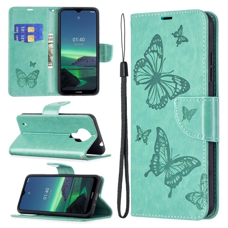 Για Nokia 1.4 Ανάγλυφο δύο πεταλούδες μοτίβο οριζόντια Flip PU δέρμα υπόθεση με κάτοχο & υποδοχή για κάρτες & πορτοφόλι & κορδόνι (πράσινο)
