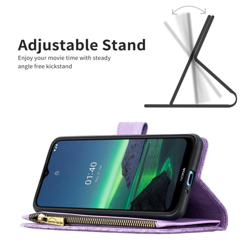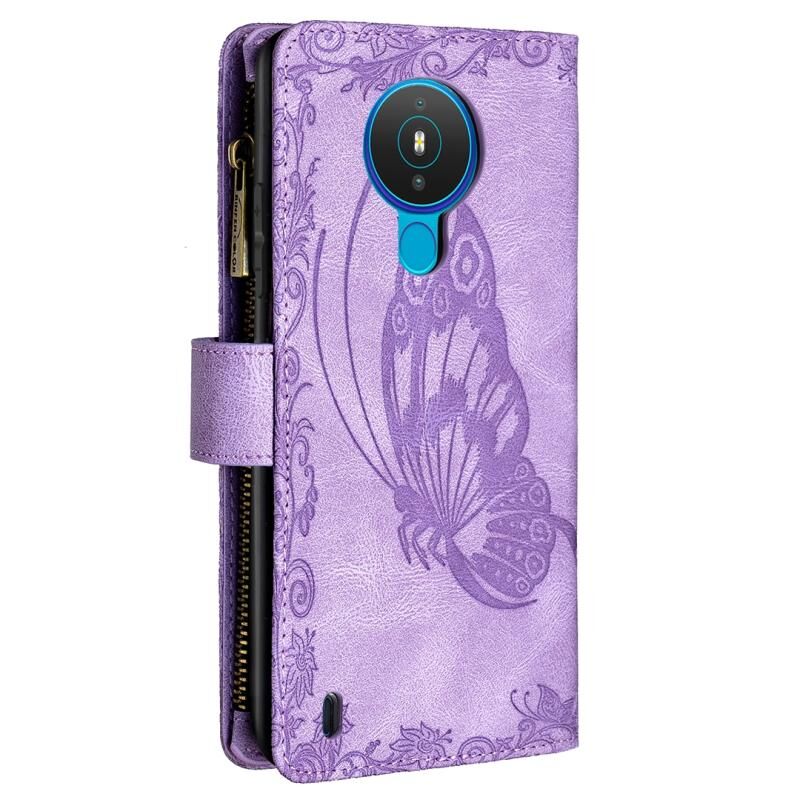 Για Nokia 1.4 Flying πεταλούδα ανάγλυφο μοτίβο φερμουάρ οριζόντια Flip δερμάτινη θήκη με κάτοχο & υποδοχές για κάρτες & πορτοφόλι (μωβ)