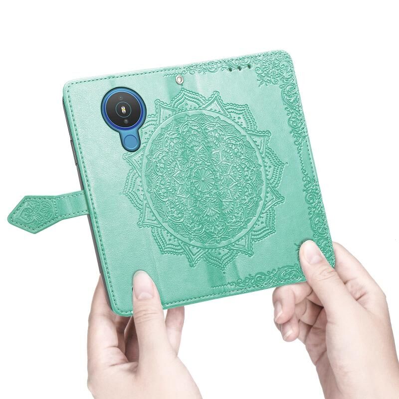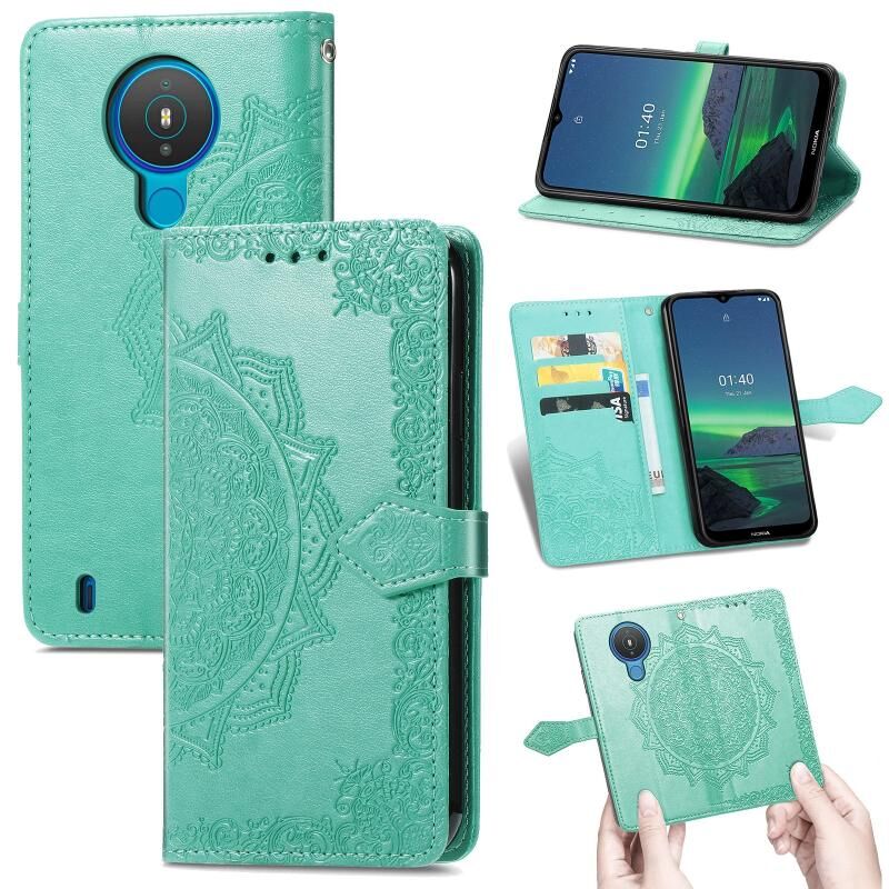Για Nokia 1.4 Mandala λουλούδι ανάγλυφο οριζόντια Flip δερμάτινη θήκη με βραχίονα / υποδοχή για κάρτες / πορτοφόλι / κορδόνι (πράσινο)