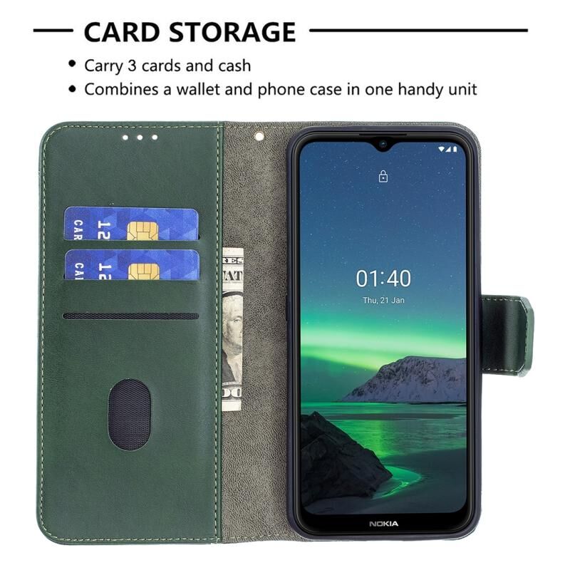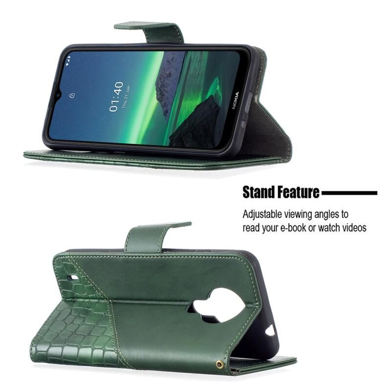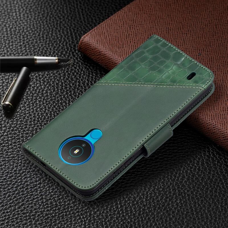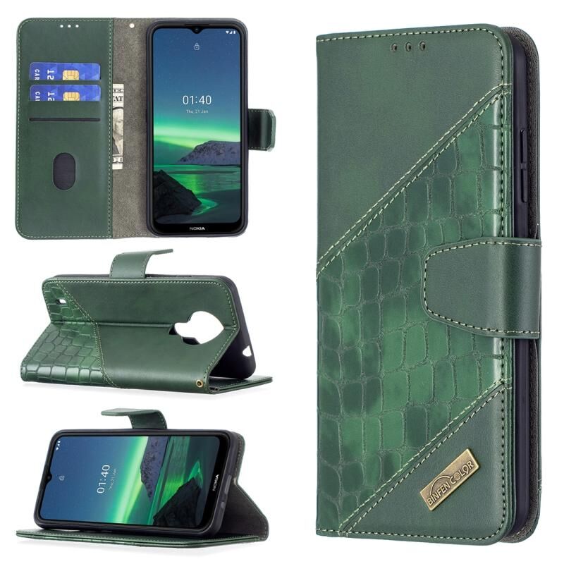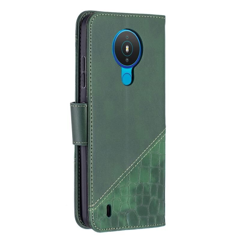 For Nokia 1.4 Matching Color Crocodile Texture Horizontal Flip PU Leather Case with Wallet & Holder & Card Slots(Green)