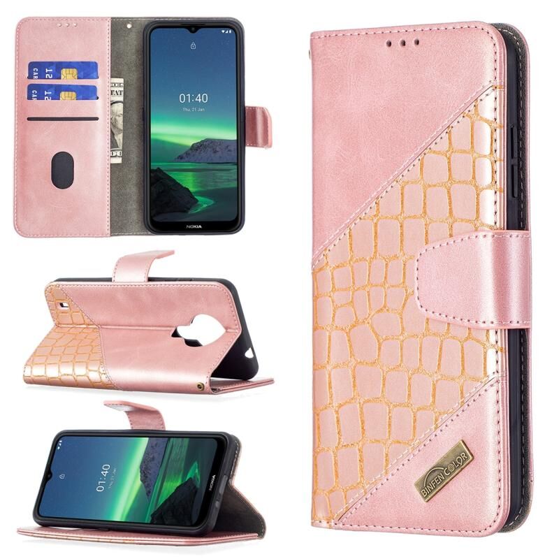 For Nokia 1.4 Matching Color Crocodile Texture Horizontal Flip PU Leather Case with Wallet & Holder & Card Slots(Rose Gold)