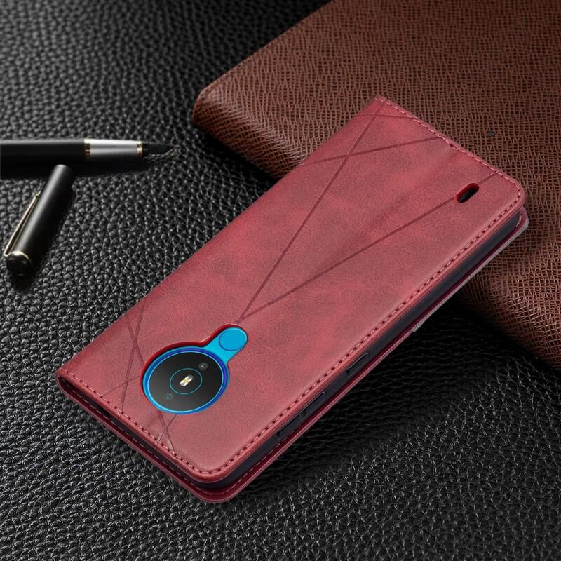 Για Nokia 1.4 Rhombus υφή Οριζόντια Flip μαγνητική δερμάτινη θήκη με θήκη & υποδοχές για κάρτες & πορτοφόλι (κόκκινο)