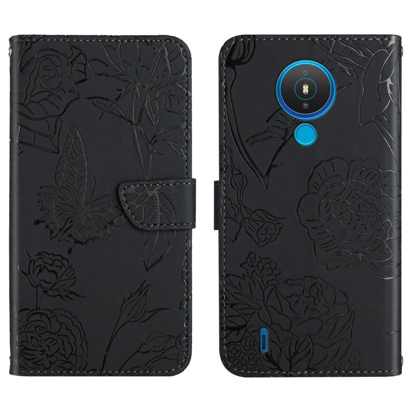 Θήκη τηλεφώνου Nokia 1.4, Δερμάτινη με ανάγλυφο σχέδιο πεταλούδας και παιώνιας (Κόκκινη)
