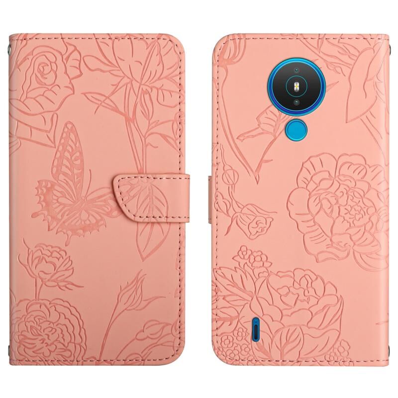 Θήκη τηλεφώνου Nokia 1.4, Δερμάτινη με ανάγλυφο σχέδιο πεταλούδας και παιώνιας (Κόκκινη)