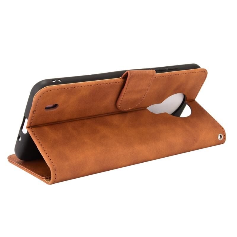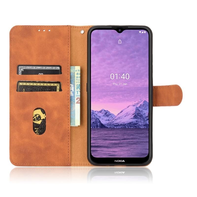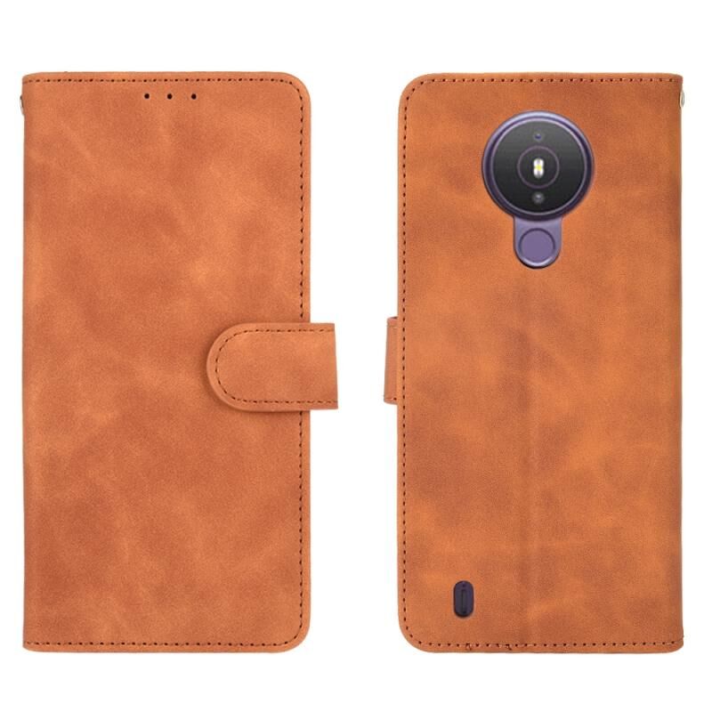 For Nokia 1.4 Solid Color Skin Feel Magnetic Buckle Horizontal Flip Calf Texture PU Leather Case with Holder & Card Slots & Wallet(Brown)