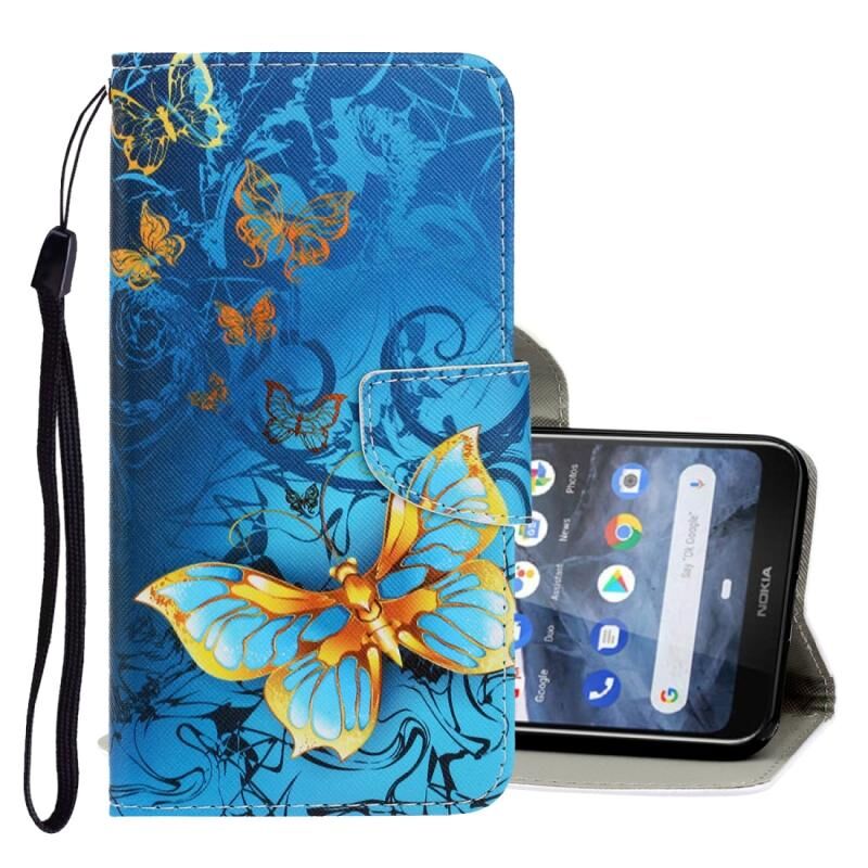 Θήκη δέρματος PU με σχέδιο 3D, οριζόντιο άνοιγμα, για Nokia 2.2 με βάση στήριξης & υποδοχές καρτών & πορτοφόλι (Jade Butterfly)