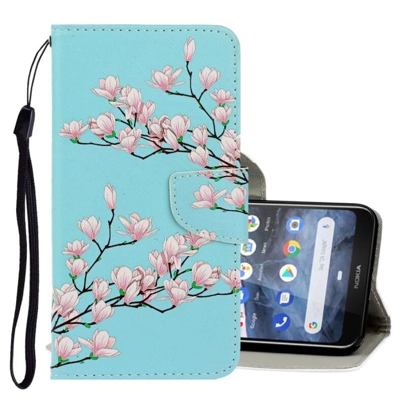 Θήκη δέρματος PU με σχέδιο 3D, οριζόντια αναδίπλωση, για Nokia 2.2 με βάση στήριξης & υποδοχές καρτών & πορτοφόλι (Μαγνολία)