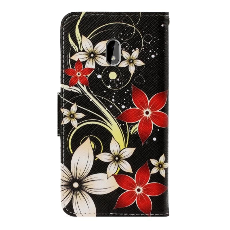 Θήκη για Nokia 2.2 3D πολύχρωμη σχέδιο οριζόντια αναδίπλωση από δέρμα PU με βάση & υποδοχές καρτών & πορτοφόλι (Κόκκινο Λουλούδι)