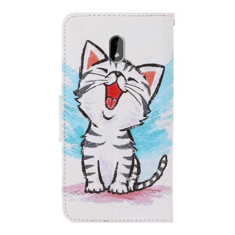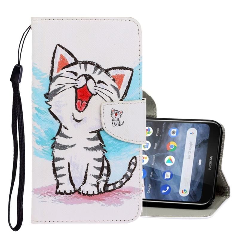 Θήκη για Nokia 2.2 3D με έγχρωμο σχέδιο, οριζόντια αναδίπλωση, από δέρμα PU με βάση & υποδοχές καρτών & πορτοφόλι (Κόκκινο Στόμα Γάτας)