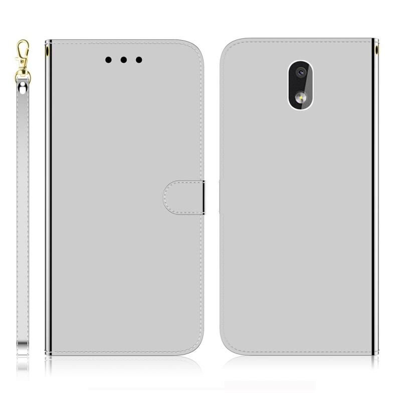 Για Nokia 2.2 Απομιμητική επιφάνεια καθρέφτη Οριζόντια Flip δερμάτινη θήκη με θήκη & υποδοχές για κάρτες & πορτοφόλι & κορδόνι (Ασημί)
