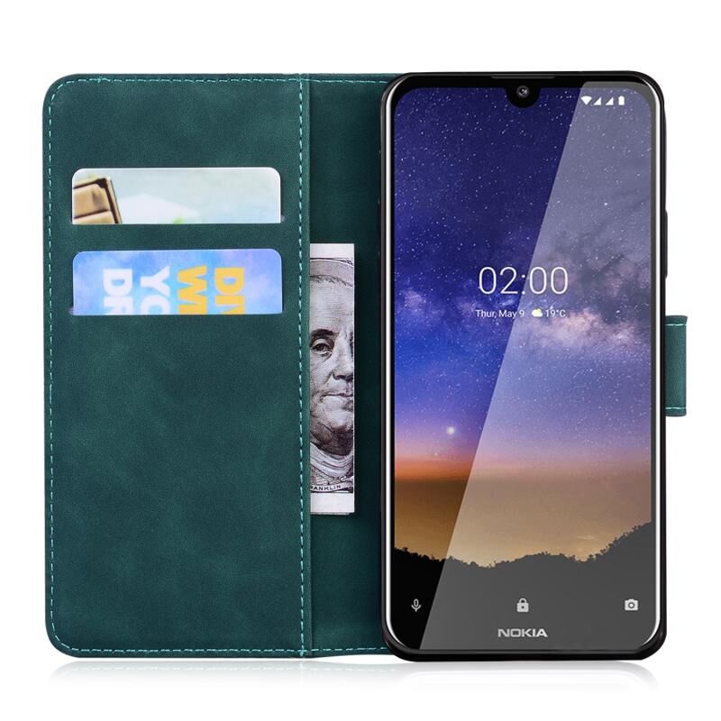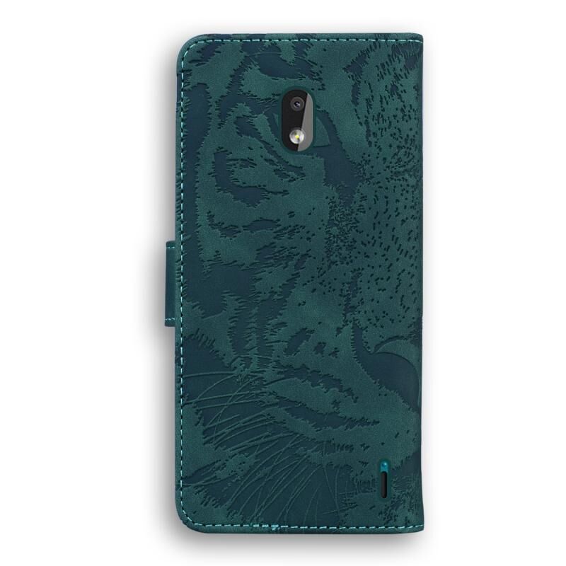 Θήκη δέρματος οριζόντιας αναδίπλωσης για Nokia 2.2 με ανάγλυφο σχέδιο τίγρης, με βάση & υποδοχές καρτών & πορτοφόλι (Πράσινο)
