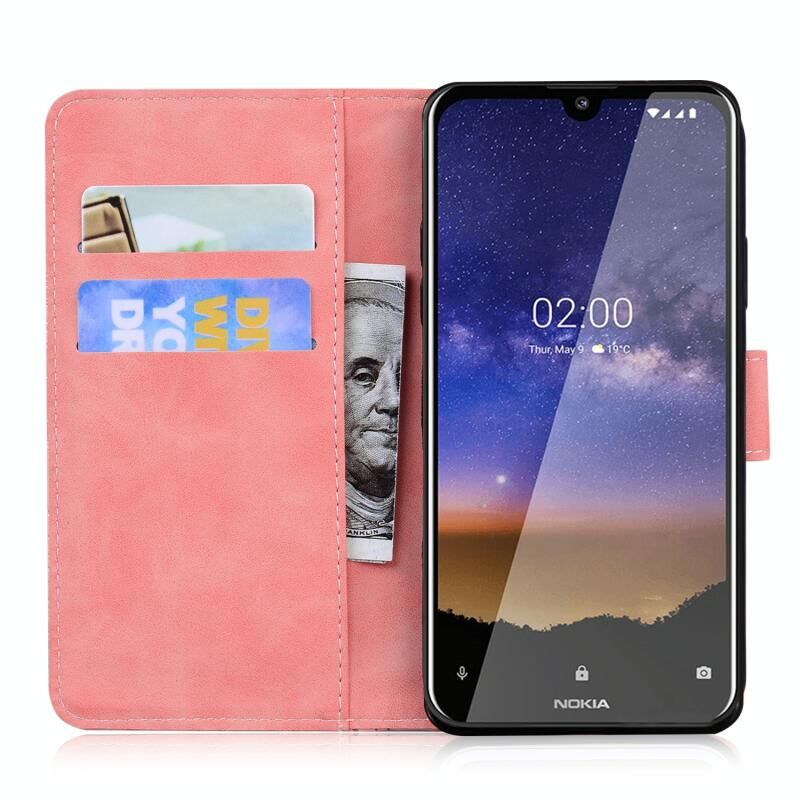 Για Nokia 2.2 Δερμάτινη Θήκη Flip με Λουράκι, Κάρτες & Πορτοφόλι (Ροζ)