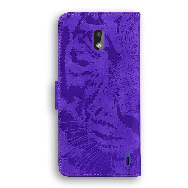 Θήκη δέρματος οριζόντιας αναδίπλωσης για Nokia 2.2 με ανάγλυφο σχέδιο τίγρης, με βάση & υποδοχές καρτών & πορτοφόλι (Πράσινο)