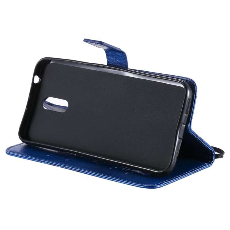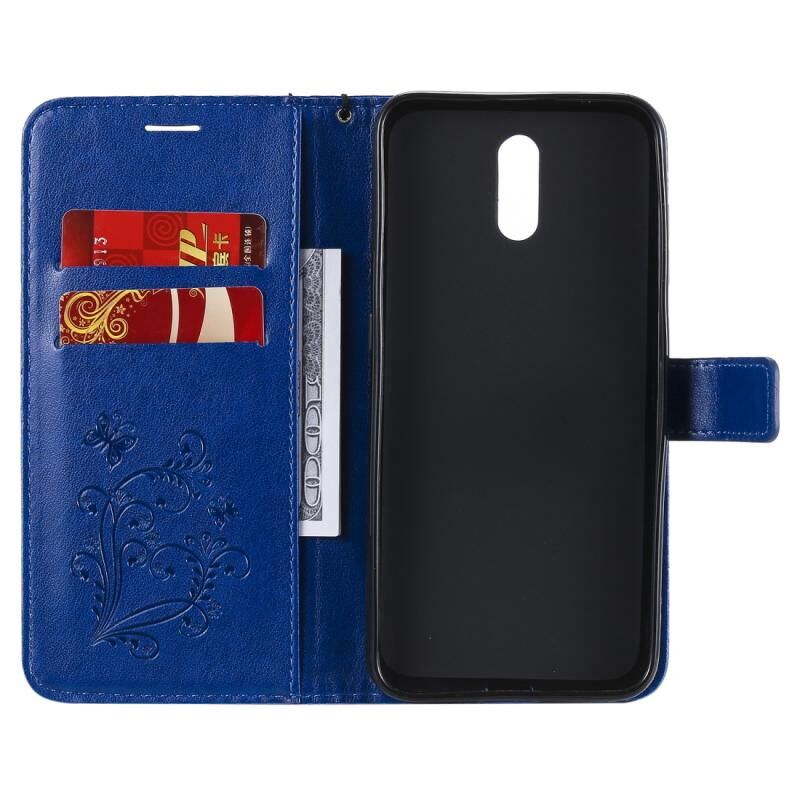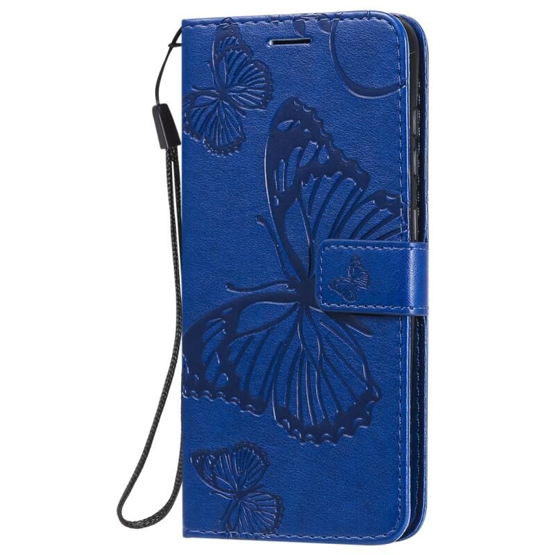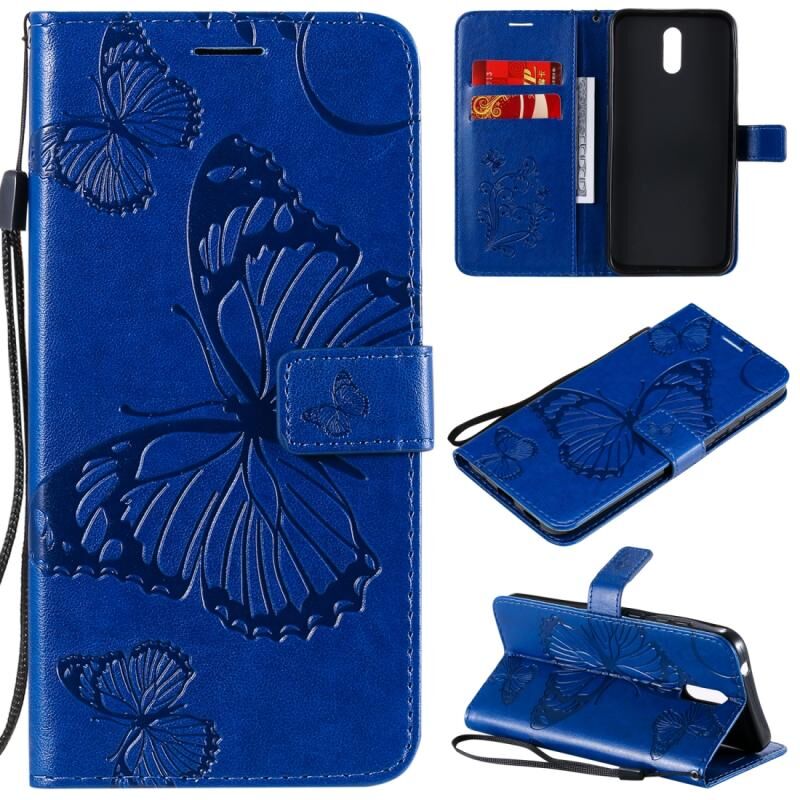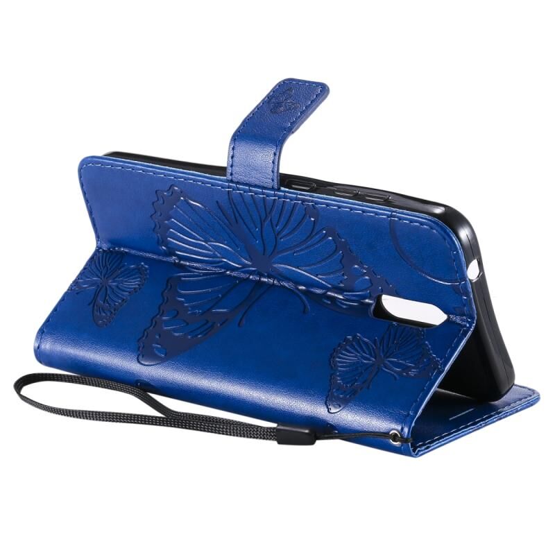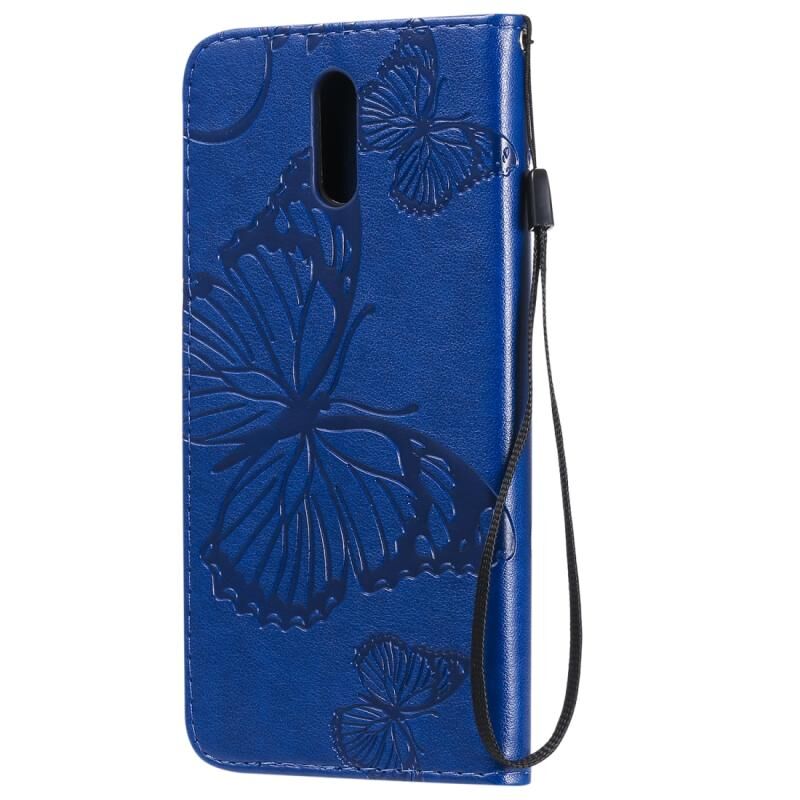 Θήκη δέρματος οριζόντιας αναδίπλωσης για Nokia 2.3 με ανάγλυφο σχέδιο 3D πεταλούδων, με βάση στήριξης & υποδοχή κάρτας & πορτοφόλι (Μωβ)