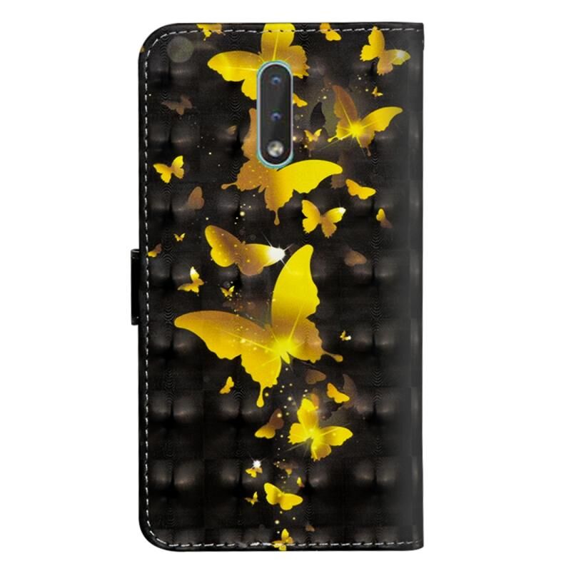 For Nokia 2.3 3D Painting Pattern Horizontal Flip TPU + PU Leather Case with Holder & Card Slots & Wallet(Golden Butterfly)