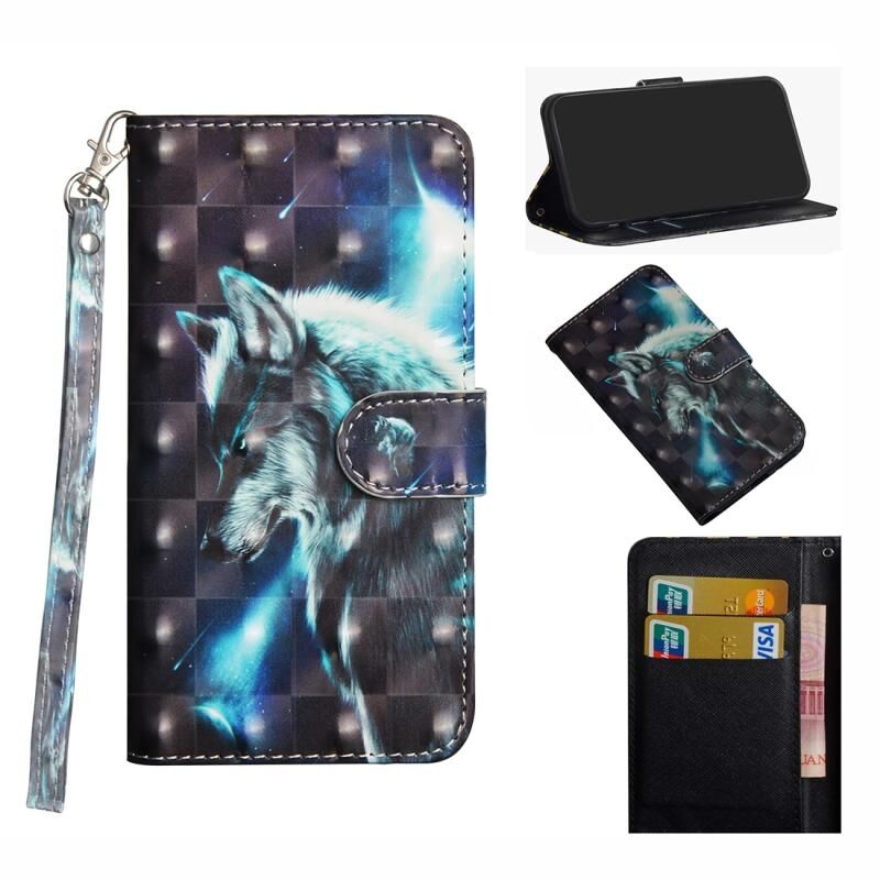 Θήκη για Nokia 2.3 με σχέδιο 3D ζωγραφικής, οριζόντιο άνοιγμα, TPU + PU δέρμα με βάση στήριξης & θήκες καρτών & πορτοφόλι (Λύκος)