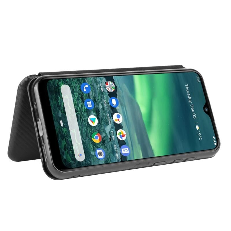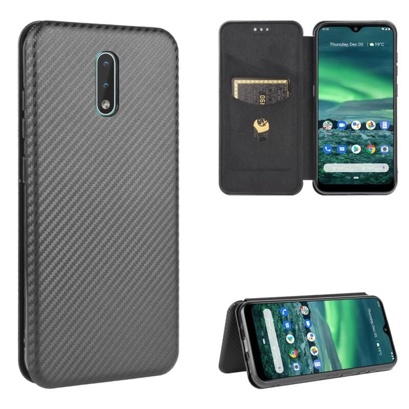 For Nokia 2.3 Carbon Fiber Texture Horizontal Flip TPU + PC + PU Leather Case with Card Slot(Black)