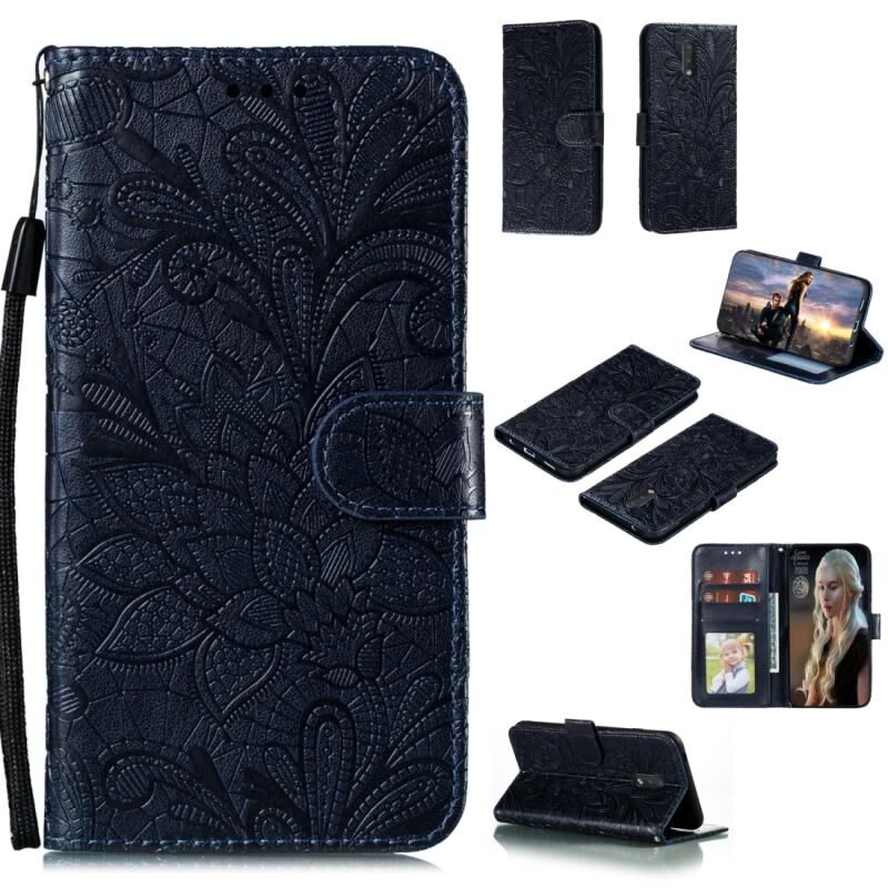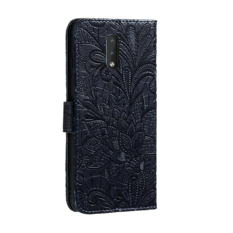 Θήκη δέρματος οριζόντιας αναδίπλωσης για Nokia 2.3 με σχέδιο ανάγλυφου λουλουδιού, με βάση & υποδοχές καρτών & πορτοφόλι & κορνίζα φωτογραφιών & κορδόνι (Σκούρο Μπλε)