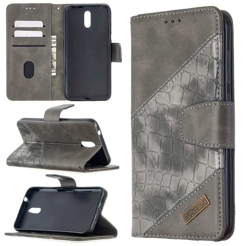 For Nokia 2.3 Matching Color Crocodile Texture Horizontal Flip PU Leather Case with Wallet & Holder & Card Slots(Grey)
