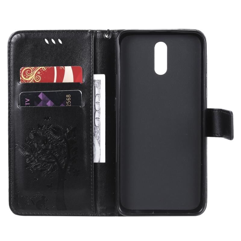 Για Nokia 2.3 Tree & Cat ανάγλυφο μοτίβο οριζόντια Flip δερμάτινη θήκη με θήκη & υποδοχές για κάρτες & πορτοφόλι & κορδόνι (μαύρο)