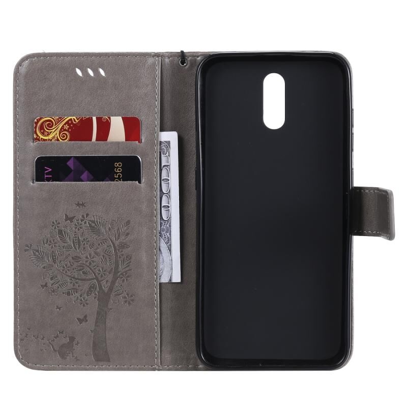 Για Nokia 2.3 Tree & Cat ανάγλυφο μοτίβο οριζόντια Flip δερμάτινη θήκη με θήκη & υποδοχές για κάρτες & πορτοφόλι & κορδόνι (γκρι)