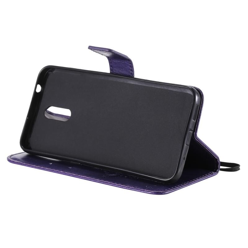 Για Nokia 2.3 Tree & Cat ανάγλυφο μοτίβο οριζόντια Flip δερμάτινη θήκη με θήκη & υποδοχές για κάρτες & πορτοφόλι & κορδόνι (μωβ)