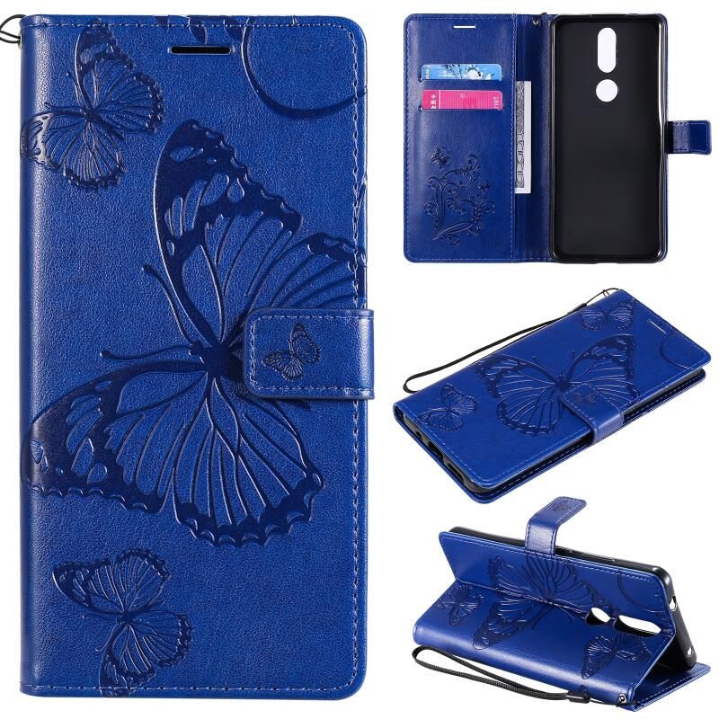 Για Nokia 2.4 3D πεταλούδες ανάγλυφο μοτίβο οριζόντια Flip δερμάτινη θήκη με κάτοχο & υποδοχή για κάρτες & πορτοφόλι (μπλε)