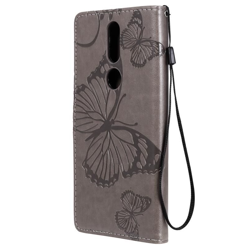 Για Nokia 2.4 3D πεταλούδες ανάγλυφο μοτίβο οριζόντια Flip δερμάτινη θήκη με κάτοχο & υποδοχή για κάρτες & πορτοφόλι (γκρι)