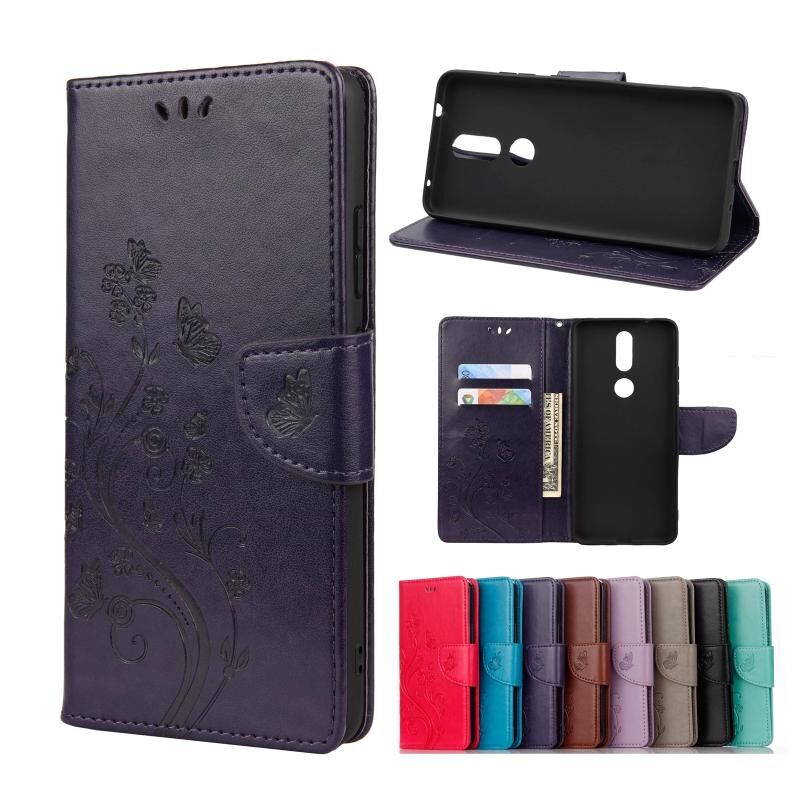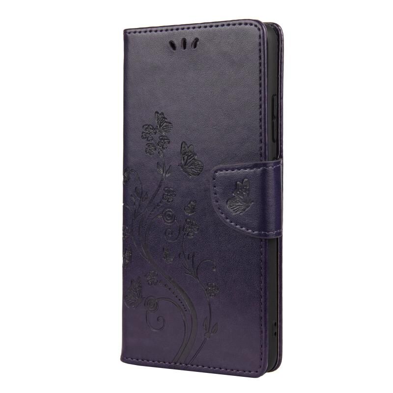 Θήκη δέρματος οριζόντιας αναδίπλωσης για Nokia 2.4 με σχέδιο πεταλούδας, με βάση στήριξης & υποδοχές καρτών & πορτοφόλι (Ανοιχτό Μωβ)