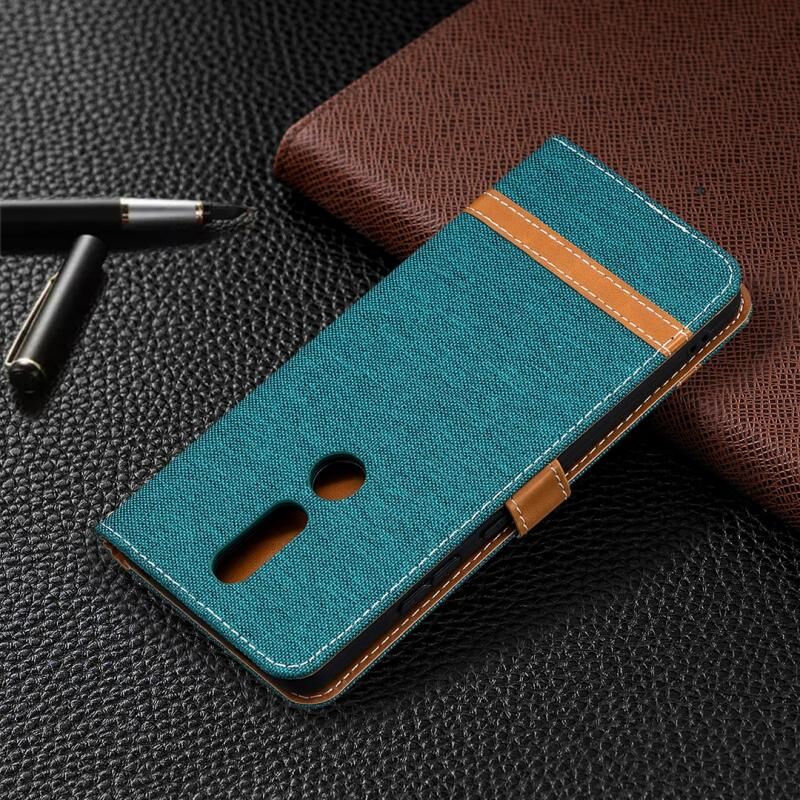Για Nokia 2.4 Χρωματικά ταιριαστή δερμάτινη θήκη με υφή τζιν με θήκη & υποδοχές για κάρτες & πορτοφόλι & κορδόνι (πράσινο)