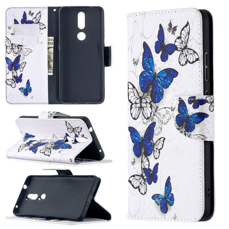For Nokia 2.4 Colored Drawing Pattern Horizontal Flip Leather Case with Holder & Card Slots & Wallet(Blue Butterfly)