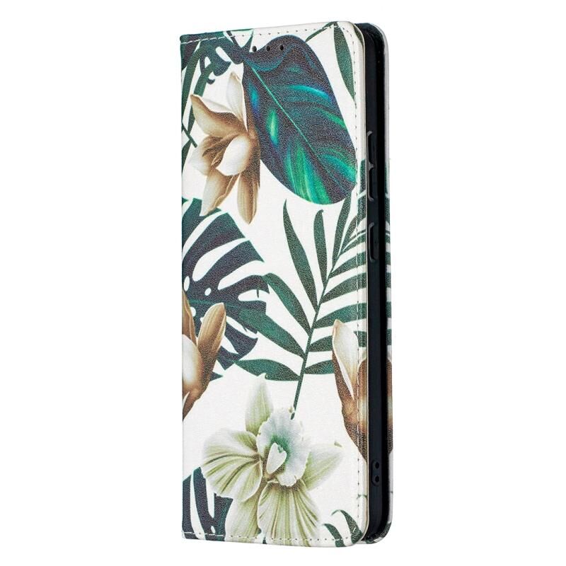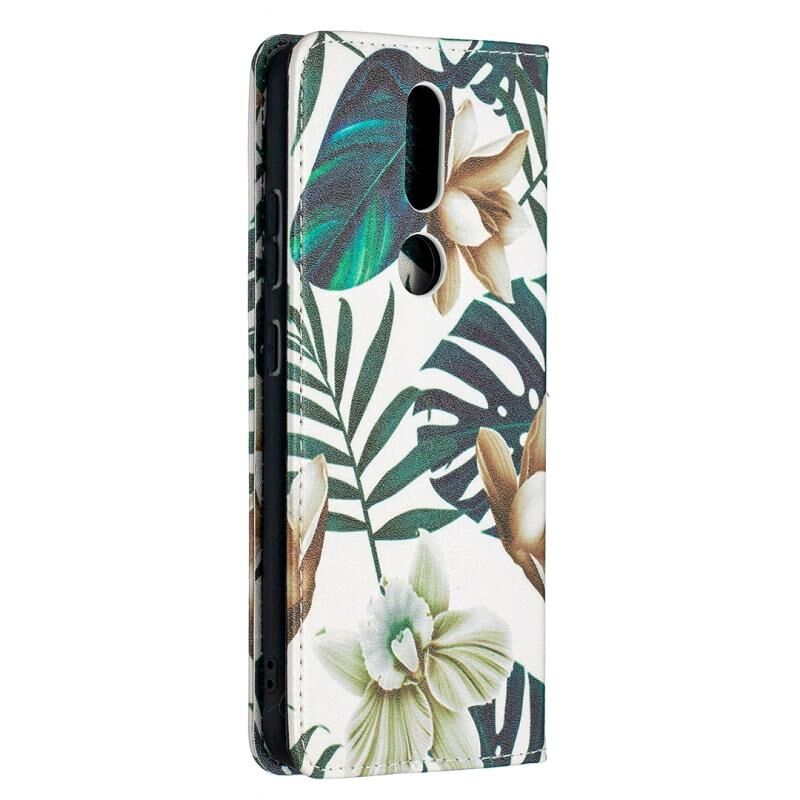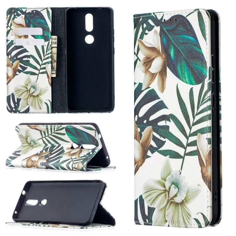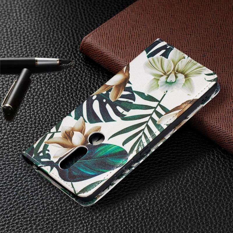 Θήκη για Nokia 2.4 με έγχρωμο σχέδιο, αόρατο μαγνητικό, οριζόντιο flip από δερματίνη PU με βάση στήριξης & υποδοχές καρτών & πορτοφόλι (Μπλε Φύλλα)