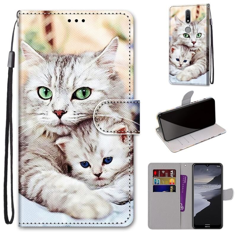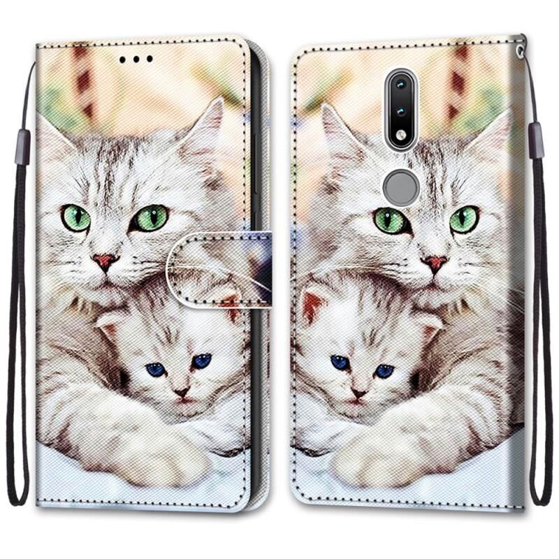 Θήκη δερματίνης PU με σχέδιο σταυρωτής υφής, οριζόντια αναδίπλωση, για Nokia 2.4 με βάση στήριξης, θήκες καρτών, πορτοφόλι & λουρί (Μεγάλη γάτα που κρατάει γατάκι)