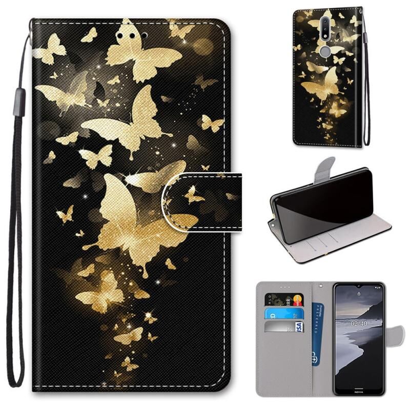 Θήκη για Nokia 2.4 από Δερματίνη PU με Σχέδιο Χρωματιστής Ζωγραφικής, Υφή Σταυρού, Οριζόντια Αναδίπλωση, με Στήριξη & Θήκες Καρτών & Πορτοφόλι & Λουρί (Ροζ Λουλούδι, Γέφυρα Tower Bridge)