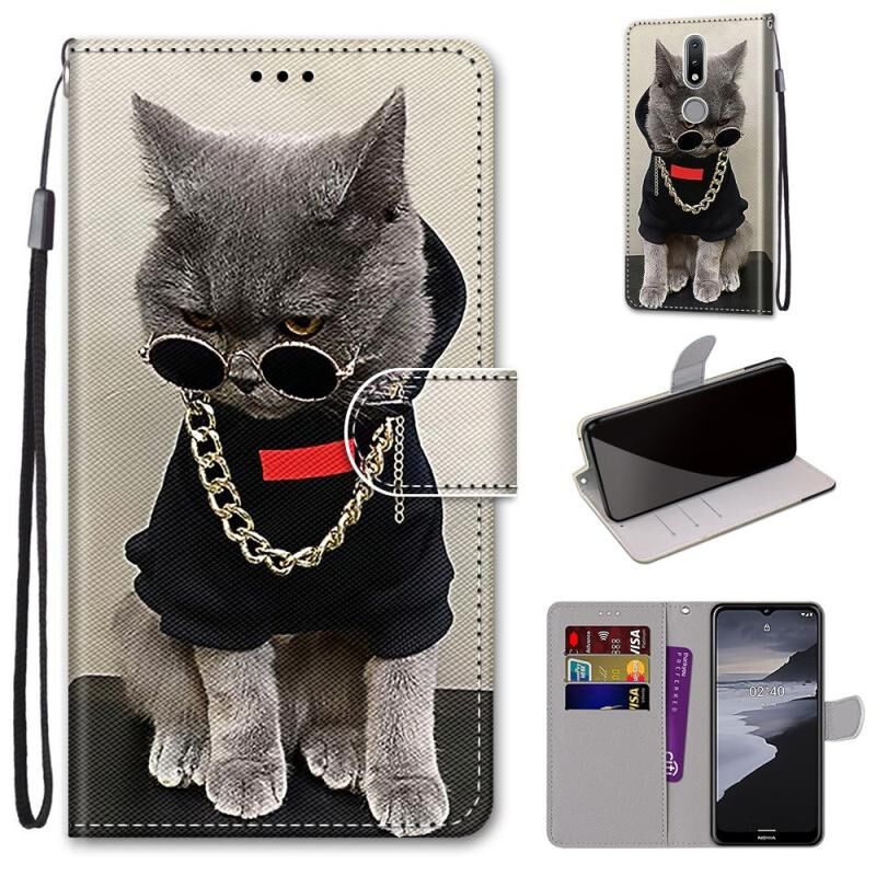 Θήκη για Nokia 2.4 με πολύχρωμο σχέδιο, υφή σταυρού, οριζόντια αναδίπλωση, από δερματίνη PU με βάση & θήκες για κάρτες & πορτοφόλι & κορδόνι (Πράσινο Λεμόνι)