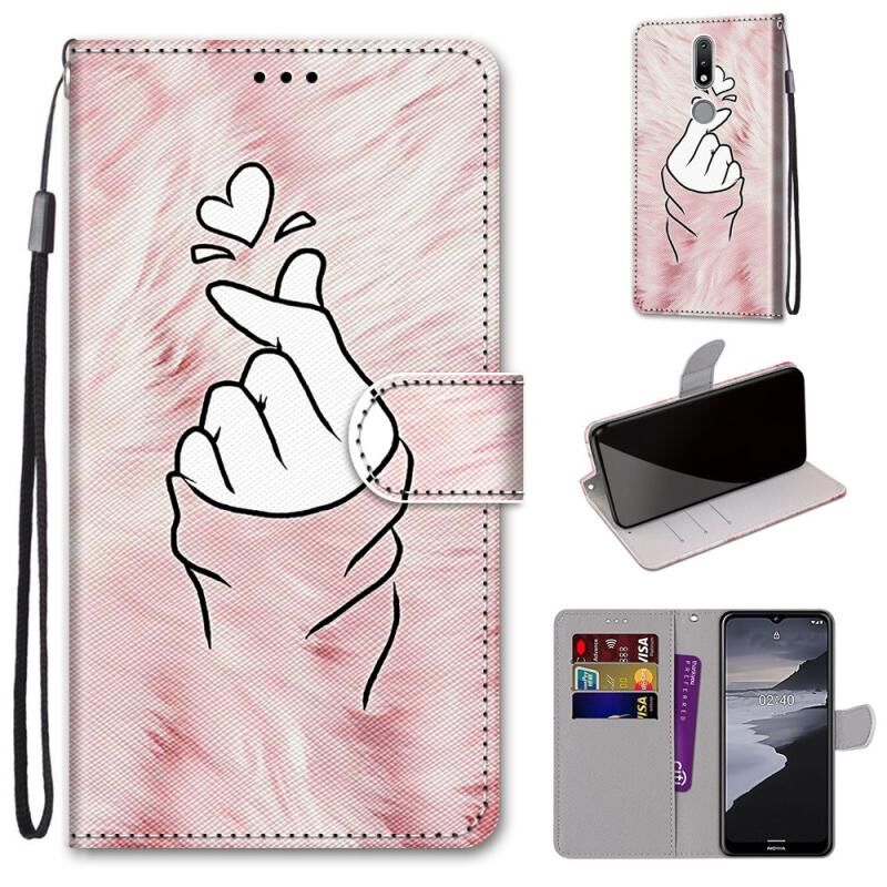 Θήκη για Nokia 2.4 με πολύχρωμο σχέδιο, υφή σταυρού, οριζόντια αναδίπλωση, από δερματίνη PU με βάση & θήκες για κάρτες & πορτοφόλι & κορδόνι (Πράσινο Λεμόνι)